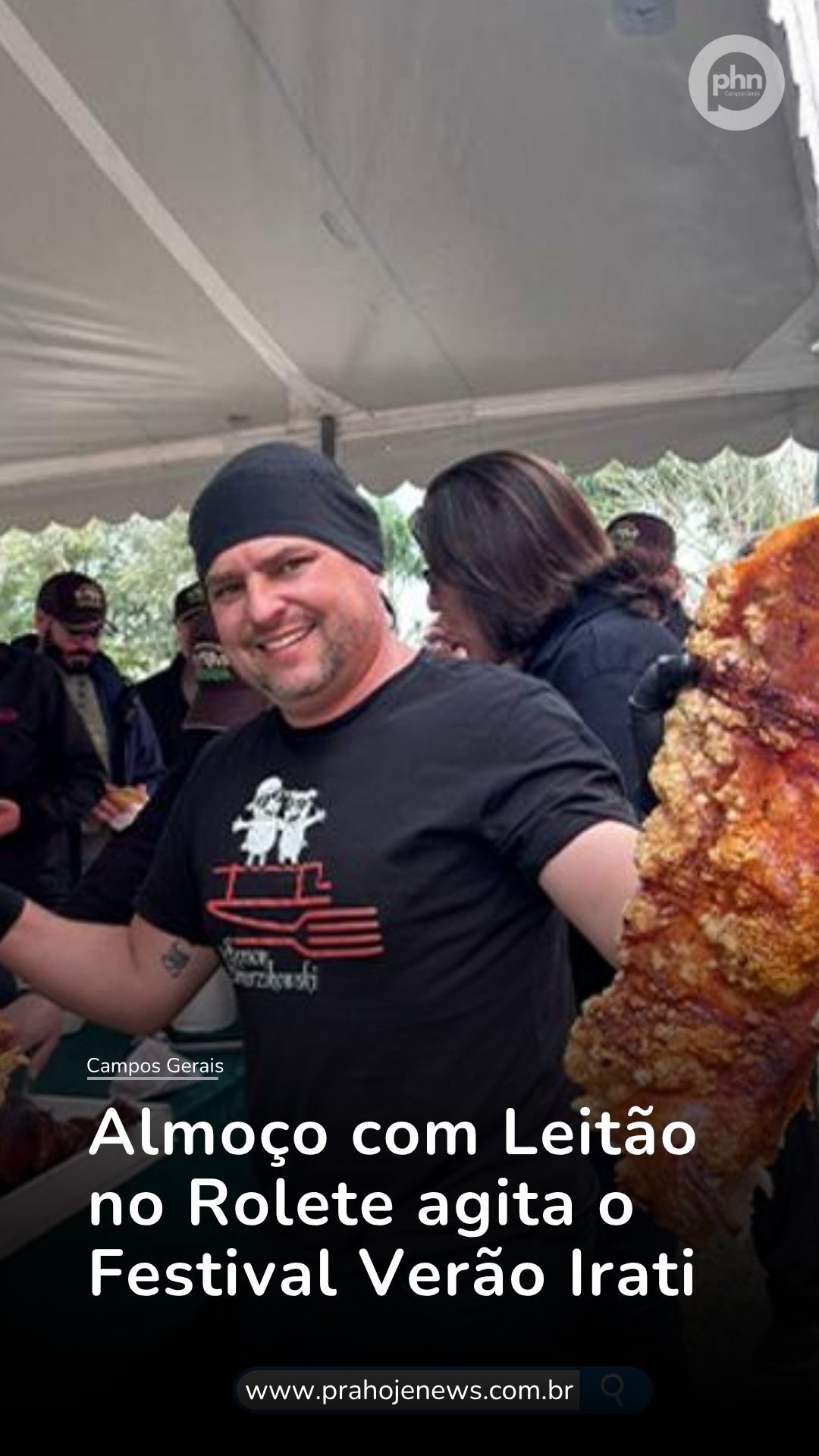 No domingo, 9 de novembro, a partir das 12h, o público de Irati poderá saborear um delicioso Leitão no Rolete preparado por Jeferson Zwierzokowski. O almoço integra a programação do Festival Verão Irati, reunindo boa comida e clima de confraternização.