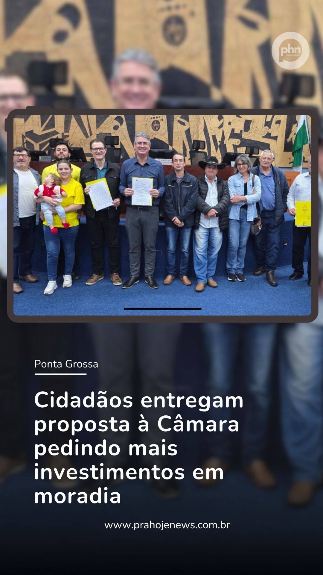Representantes do Movimento Comunitário de Ponta Grossa entregaram uma Carta Aberta à Câmara Municipal, solicitando o aumento dos recursos destinados à moradia popular no Orçamento Público Municipal de 2026. O documento foi recebido pelo presidente da Câmara, vereador Júlio Kuller, e pelo presidente da Comissão de Finanças, vereador Paulo Balancim.