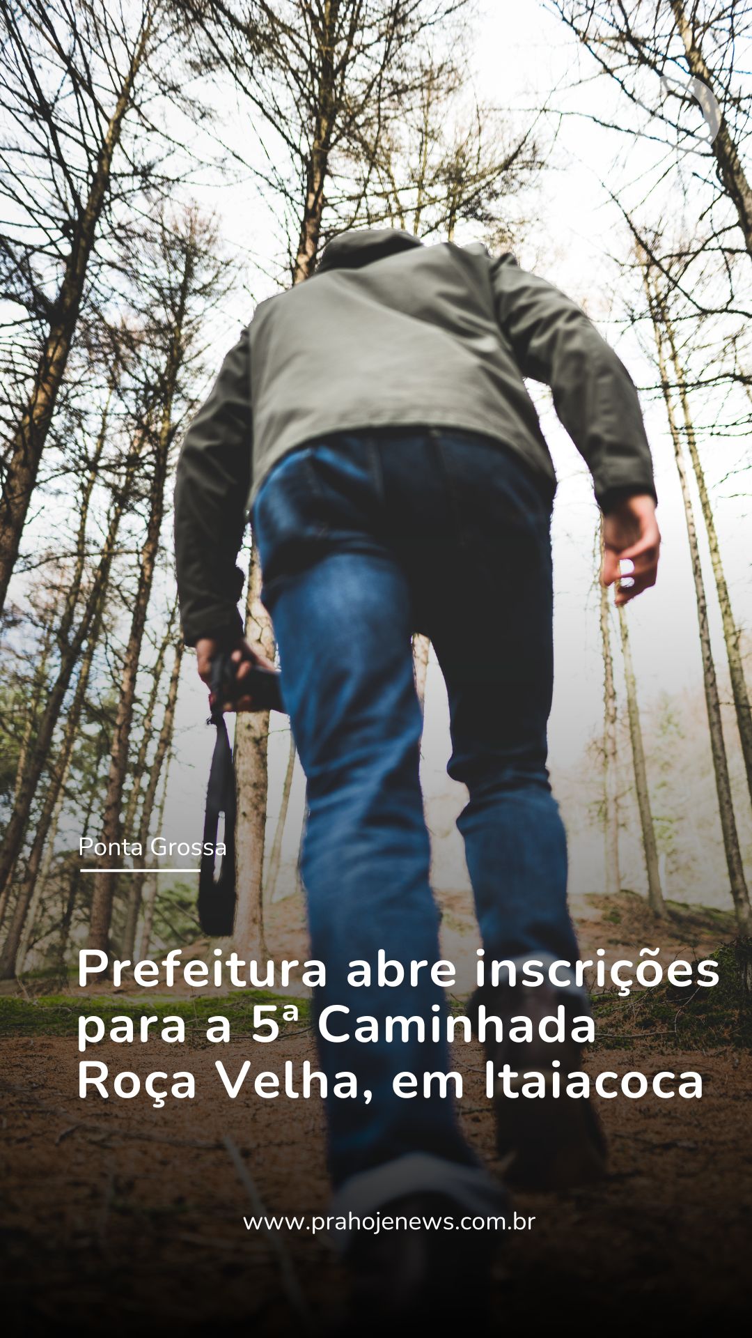 A Prefeitura de Ponta Grossa, por meio da Secretaria Municipal de Turismo e em parceria com o IDR-Paraná, realiza a 5ª edição da Caminhada na Natureza – Circuito Roça Velha, no distrito de Itaiacoca. O evento acontece no dia 9 de novembro (domingo), com saída às 8h, em frente à Igreja Senhor Bom Jesus, na localidade de Roça Velha.